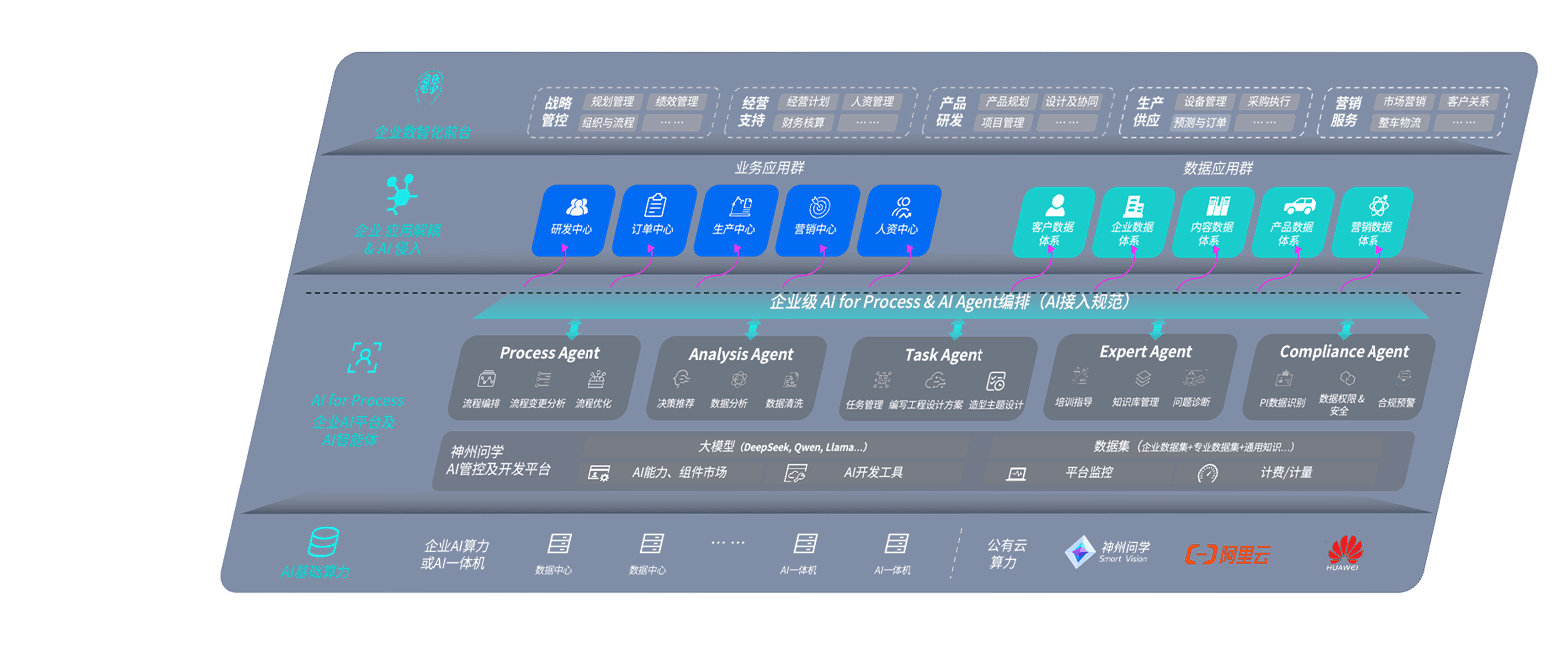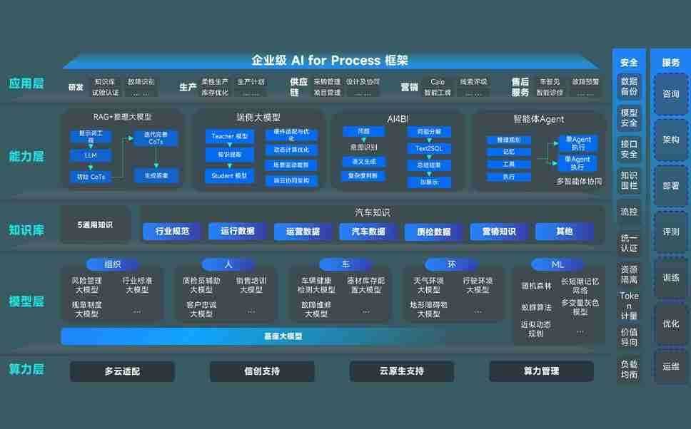 AG尊龙凯时问学智车解决方案是一套基于AI技术的汽车行业智能化系统,,,,覆盖从底层算力到顶层AI应用的全栈方案。。。方案由算力层、、、、模型层和应用层组成:算力层,,方案支持多种一体机配置,,,具备云端灵活部署、、多云适配以及动态优化计算资源的能力;模型层,,,,AG尊龙凯时问学平台版提供了企业级AI应用一站式构建与管理平台,,,支持基于后训练强化技术的汽车企业专属模型的训练、、、、评测和运营;应用层,,,,AG尊龙凯时问学DeepSeek版提供包括超级员工、、智能招采、、、、智能营销、、智能客服、、AI for BI等一系列解决方案,,可助力汽车行业实现数字化转型,,,,让管理更智能、、、响应更敏捷。。